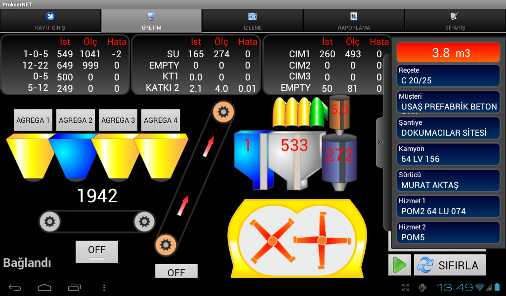 Sonsuz sayıda reçete, müşteri, şantiye, kamyon ve şoför tanımlanabilir.